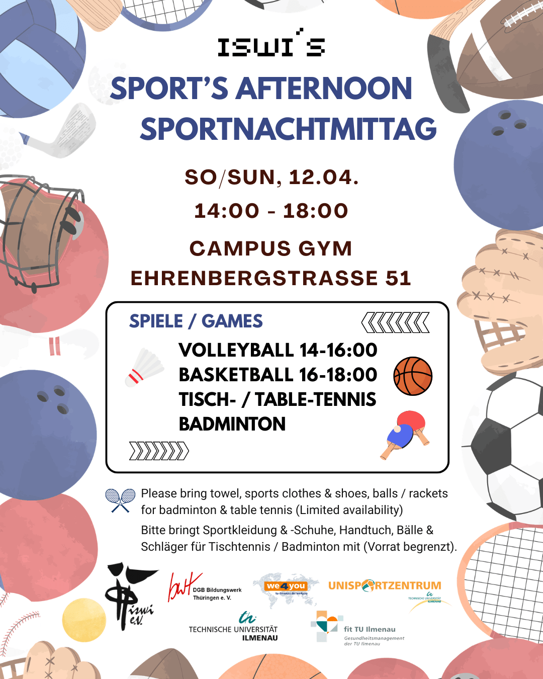 So/Sun, 12.4. ISWI-Sportnachmittag / ISWI-Sport’s afternoon – 14:00 – 18:00